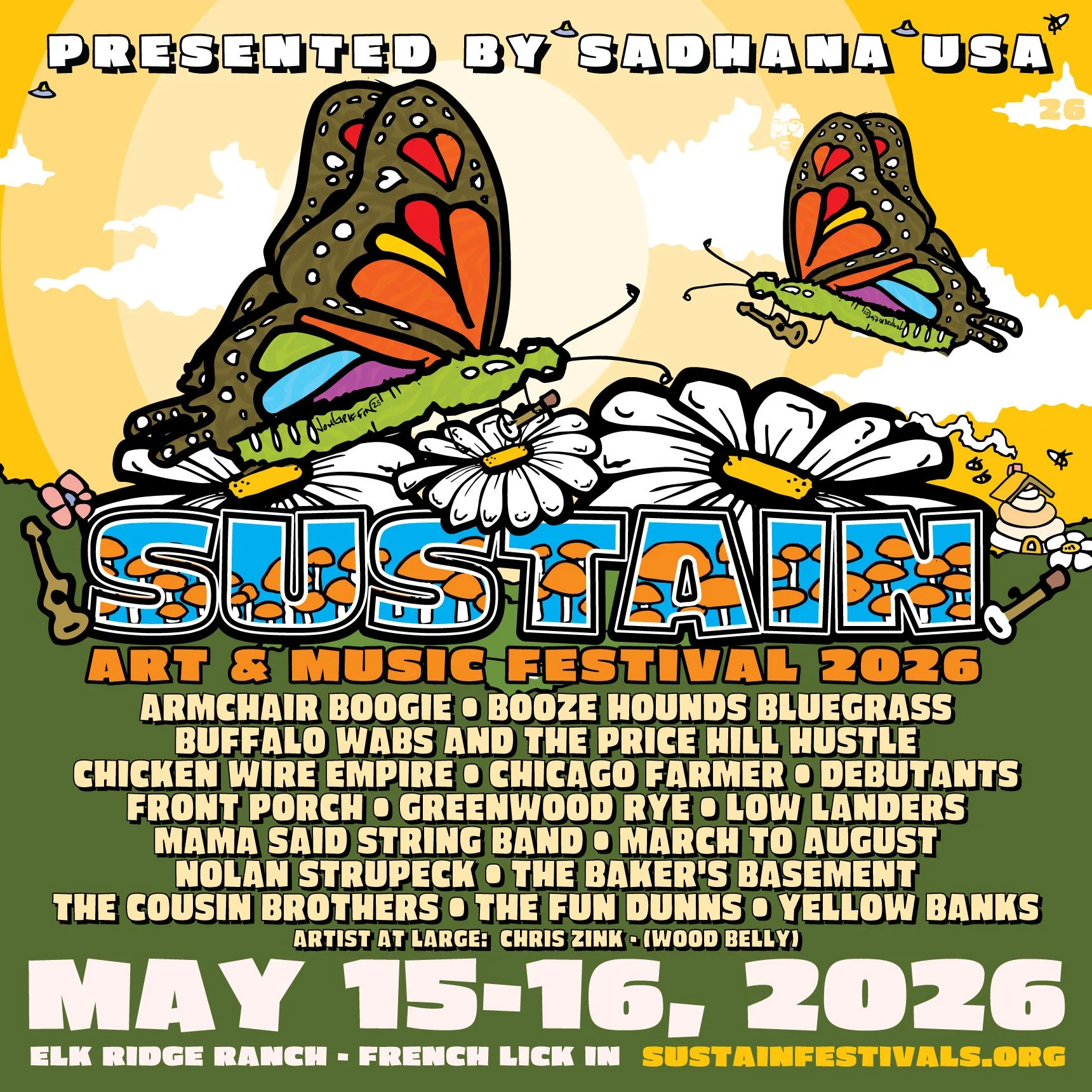 “This is only our 2nd year featuring an Artist at Large. It has been a goal of mine to add this experience for our fans since the beginning of Sustain Fest because it adds so many different layers to the stage performances! Chris Zink is not a stranger to Sustain having played the festival twice as well as our concert series as a member of Wood Belly. Zink will be facilitating late night picking, lead bluegrass workshops and of course bring elite musicianship to the stage. However, perhaps his greatest contribution will be the passion and loving energy he shares with fellow artists and fans all weekend.”